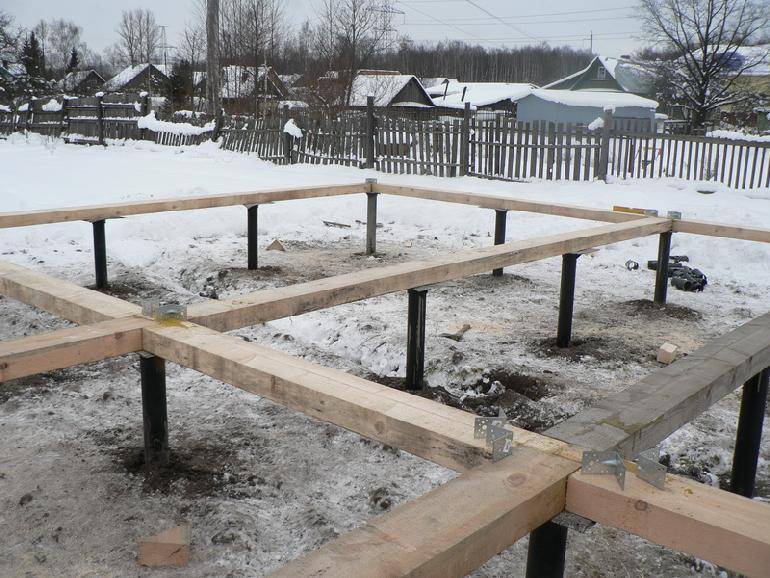 Особенно необходимо устанавливать сваи под каждый угол при монтаже швеллера на них. Расстояние между промежуточными сваями не должно превышать трех метров.