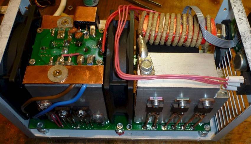Аппарат сильно нагревается при инверторной сварке, поэтому вам нужно сделать систему охлаждения. Перенагревание может привести даже к выходу всего устройства из строя, поэтому, кроме радиаторов, используются вентиляторы. Мощный вентилятор сможет охладить всю систему, его следует устанавливать напротив понижающего трансформатора. Если вы используете вентиляторы малой мощности, то вам понадобится около 6 штук.