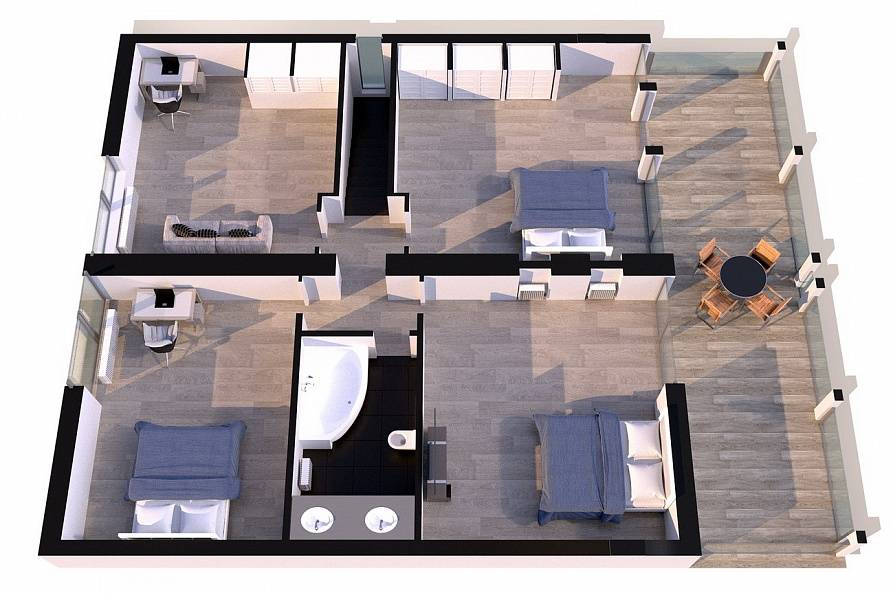 - Функциональность, практичность планировки. До минимума сведено малоиспользуемое пространство, холл, лишние нежилые комнаты. Спальни делают небольшими. Но соблюдается баланс между прагматичным подходом и комфортными условиями проживания.
