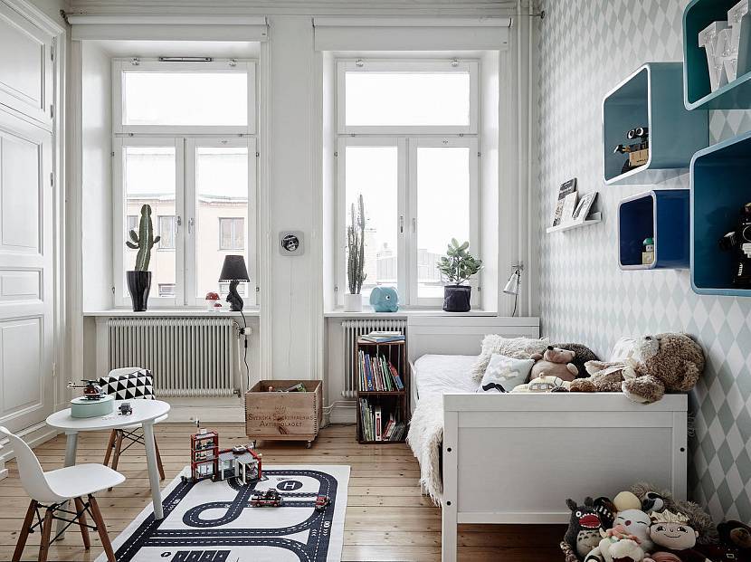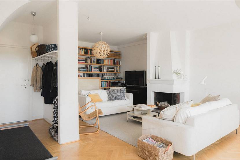 - Гостиная. В шведских домах обычно кухня плавно переходит в столовую, а столовая — в гостиную, но каждая комната имеет свое функциональное назначение. В гостиной может располагаться удобный мягкий диван, какой-нибудь интересный журнальный столик, торшер, камин. В шведском стиле хорошо уживаются ретро-вещи с современной техникой или элементами декора в стиле модерн.