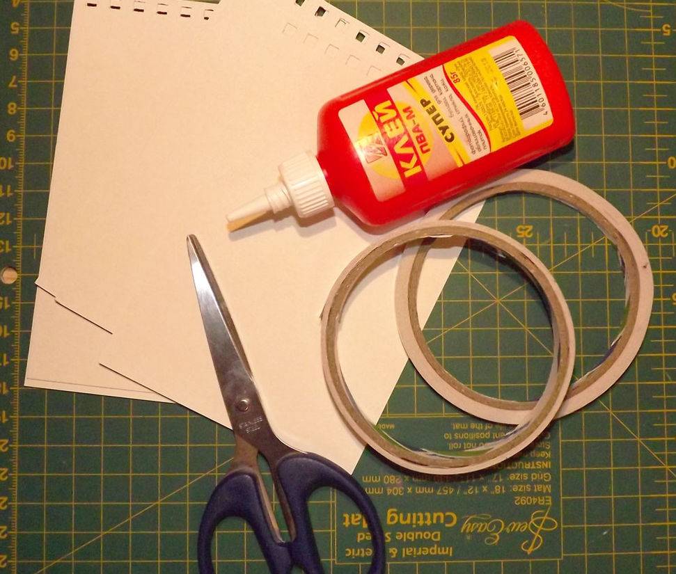 - Заранее подготовить необходимые материалы и инструменты (липкую ленту пошире и острые канцелярские ножницы), а также место для работы. Выбранный стол должен быть достаточно большим, а главное – идеально ровным, чистым и сухим.