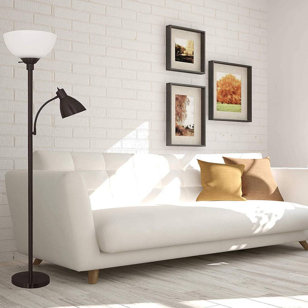 Что может быть совершеннее двух ламп в одной? Этот уникальный дизайн сочетает в себе статную торшерную лампу с утяжеленным основанием, с молочно-белым глобусом, чтобы наполнить ваше пространство окружающим освещением, и лампу для освещения задач; чтения, подсветки картины или настенной графики. Этот светильник дополняет любой декор гостиной.