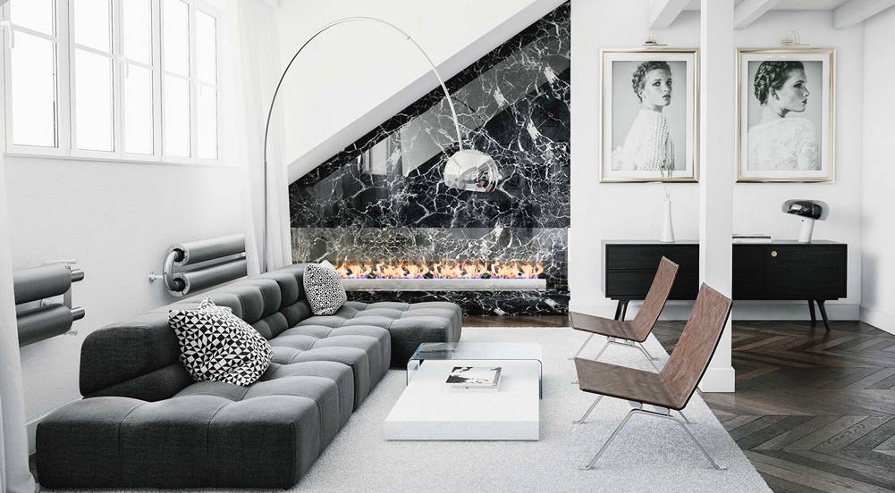 Многообразные оттенки серого – база цветовой палитры стиля «Лофт». Яркость допустима только в акцентных деталях: постерах, провокационных плакатах и коллажах, предметах искусства.