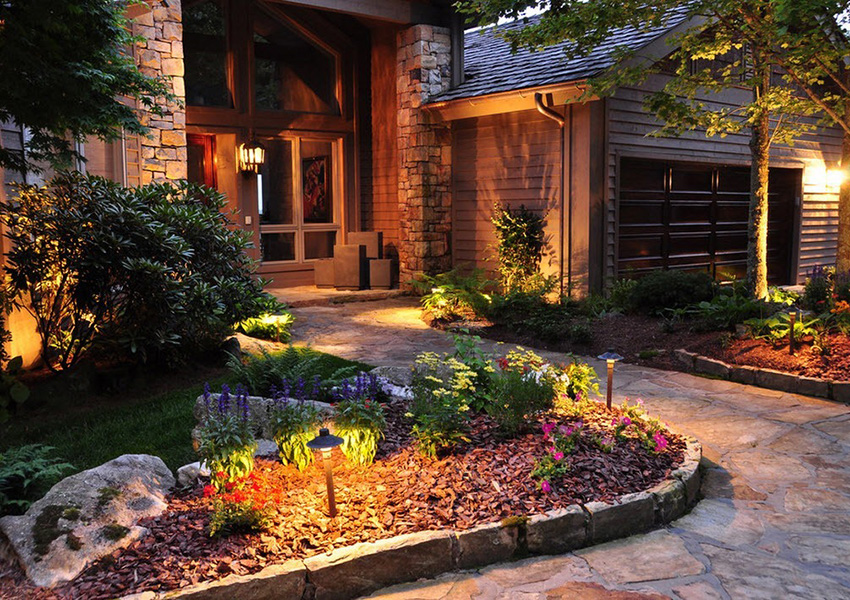 Придомовая территория обязательно должна иметь освещение входа, дорожек и различных зон.