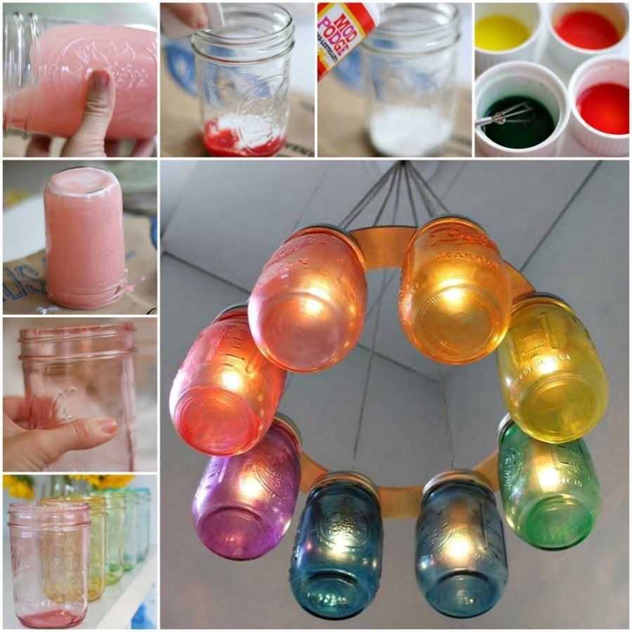 Банку предварительно можно задекорировать – обклей ее бечевкой, салфетками или попросту покрась. В любом случае, получится прекрасная и эксклюзивная люстра.