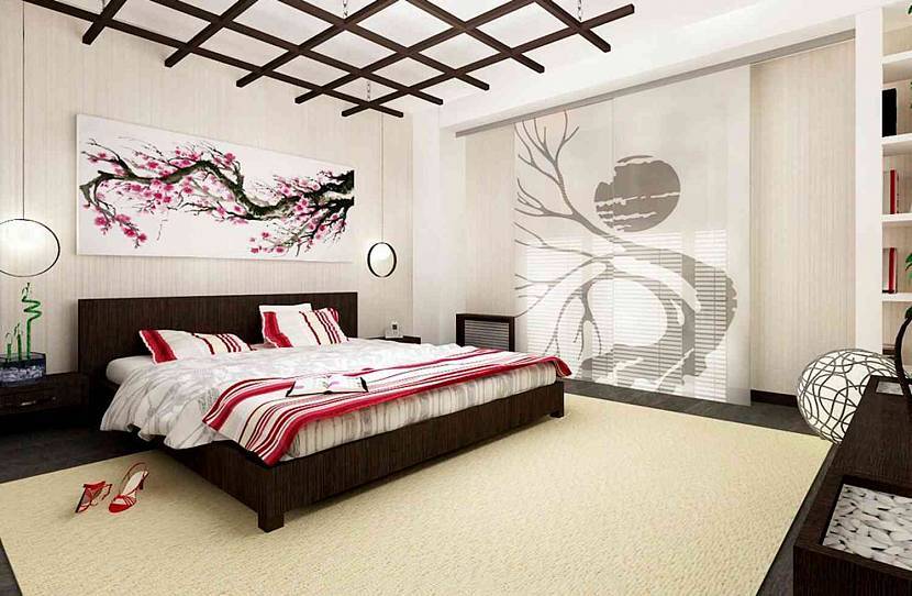 Японский минимализм популярен при оформлении малогабаритных помещений. Спальня в светлых тонах — классический вариант, который часто дополняют:
