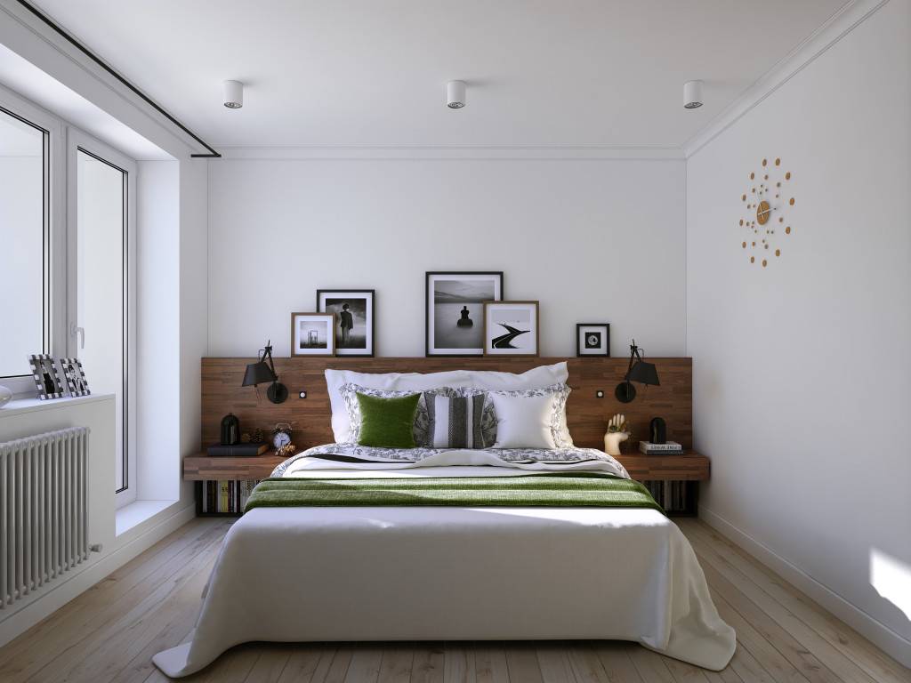 Если комната не только очень маленькая, но и узкая, не нужно ставить кровать поперек комнаты. В этом случае ее придется ставить таким образом, чтобы она не мешала при вдохе в помещение. При этом многое зависит от расположения дверного проема и радиаторов. Скажем, при всем желании нельзя поставить кровать у окна, если под подоконником батареи.
