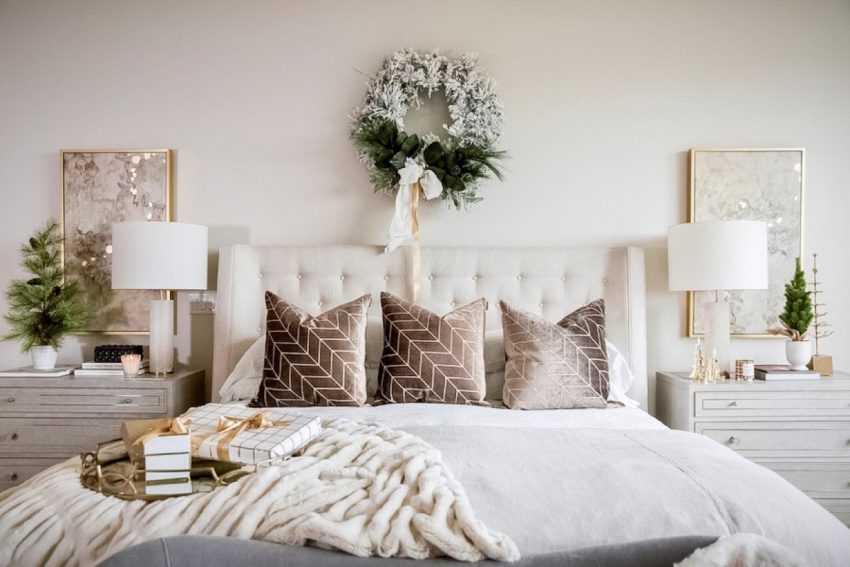 Дизайн спальни в светлых тонах строится не только на меблировке, но и на украшениях. Элементы декора рекомендуют подбирать в зависимости от стиля помещения: