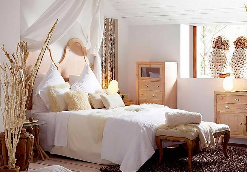 - исключает сложности при формировании мебельного ансамбля. Большое количество мебели для спален выпускается именно в светлом исполнении. Это же касается отделочных материалов.