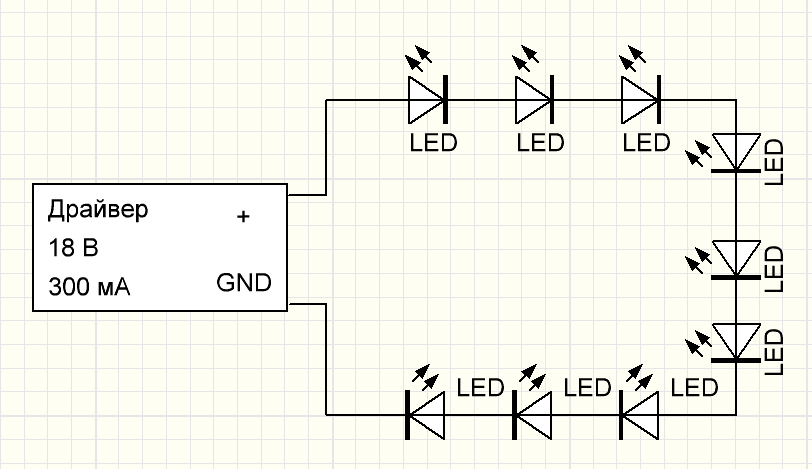 Последовательная схема подключения светодиодов к драйверу