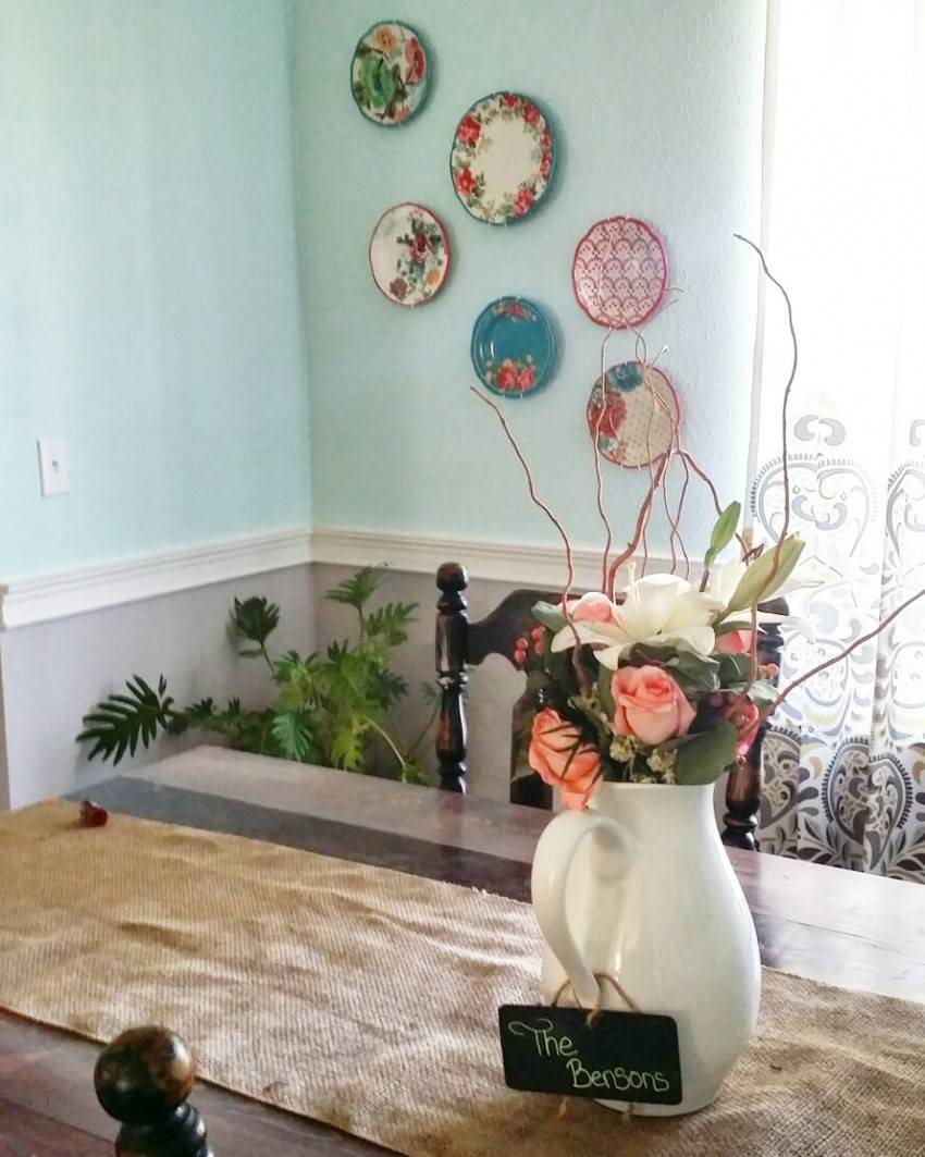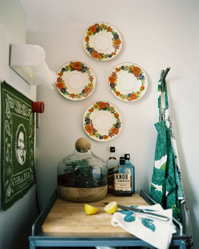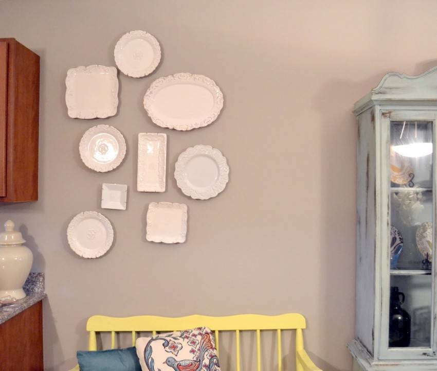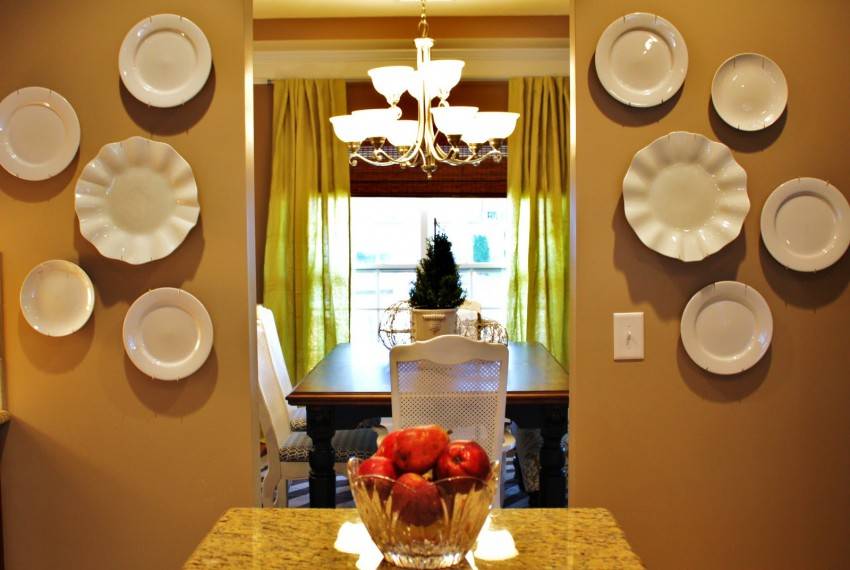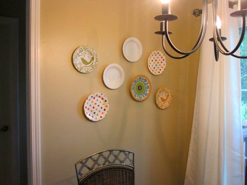 Имейте в виду, что чем ярче или темнее стена, тем более яркими должны быть блюдца, чтобы не теряться на фоне;