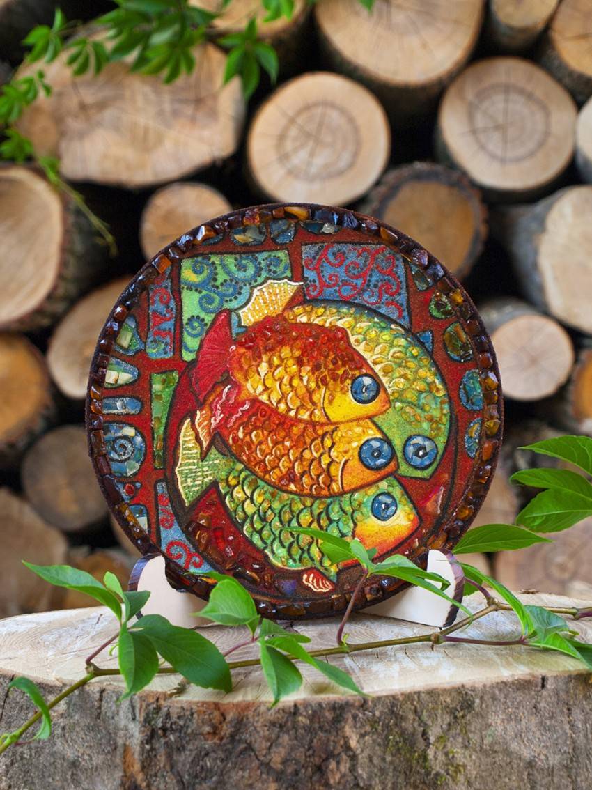 Впрочем, не обязательно покупать готовое панно, ведь можно составить «мозаику» из блюдец, разрисованных своими руками акриловыми красками.