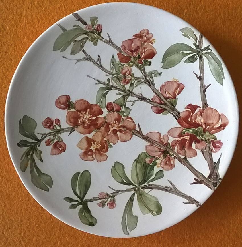 - После того, как высохнет клей, всю поверхность тарелки с изображением покрывают лаком.