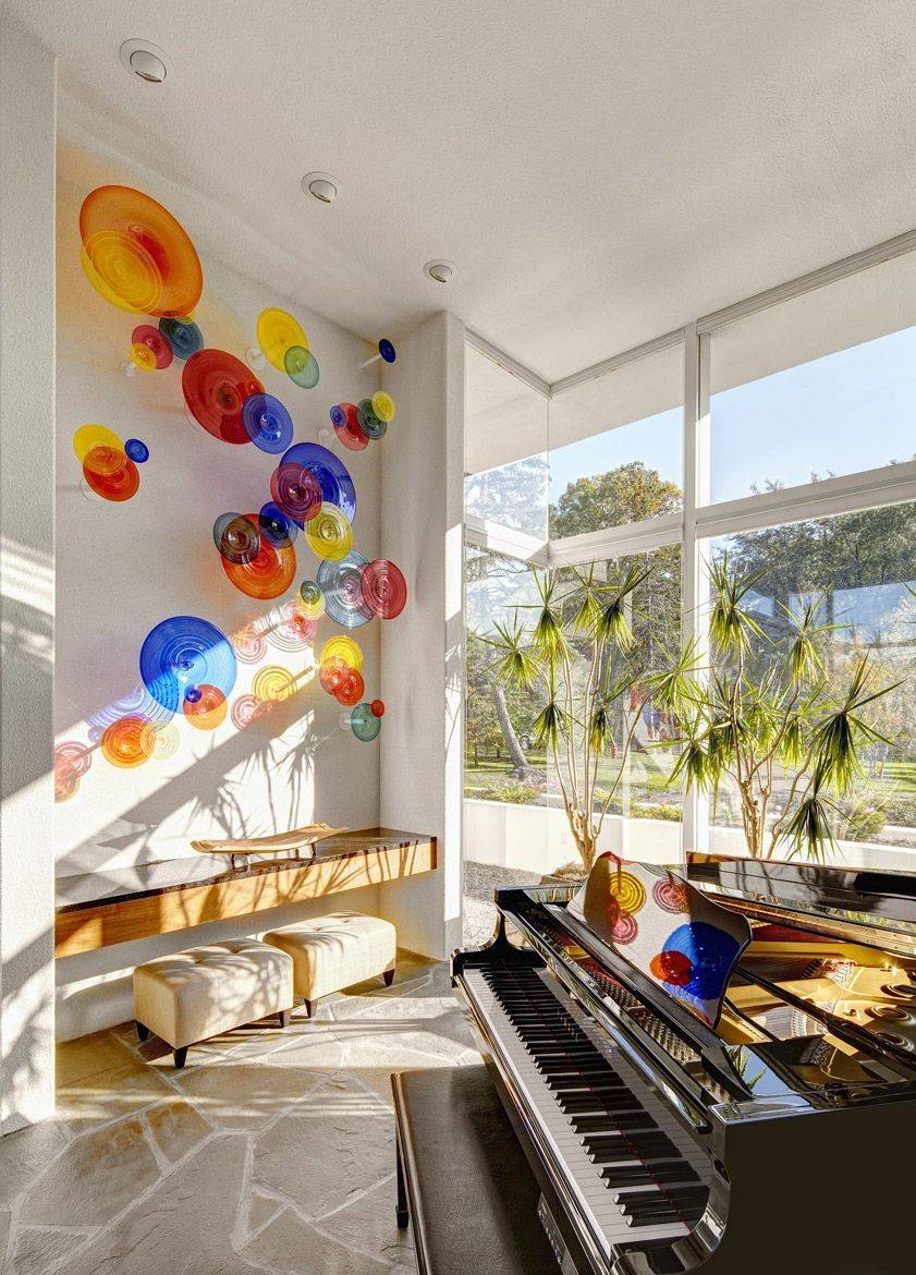 Чтобы придать комнате уникальный вид, керамические тарелки можно использовать для выделения определенных зон, таким образом, декорируя в ней стену. Выбирая любую желаемую последовательность, можно достаточно часто менять дизайн комнаты.