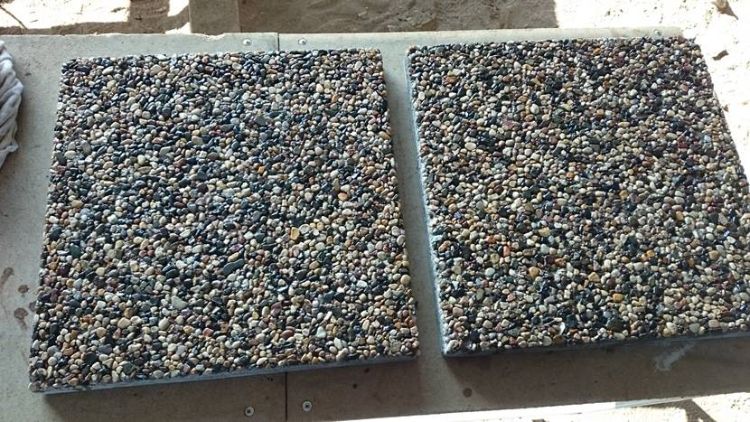 Плита, сделанная самостоятельно, примерно на 20% дешевле заводской. К тому же дома можно изготовить образцы любой часто нестандартной формы и покрасить их в цвета нужных оттенков.
