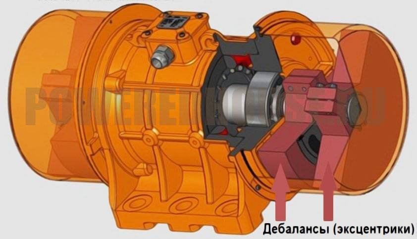 - на нижней полке рамы монтируют двигатель с эксцентриком. Подойдет агрегат мощностью 500-900 Вт, например, ИВ-98Е или ИВ-99Е.