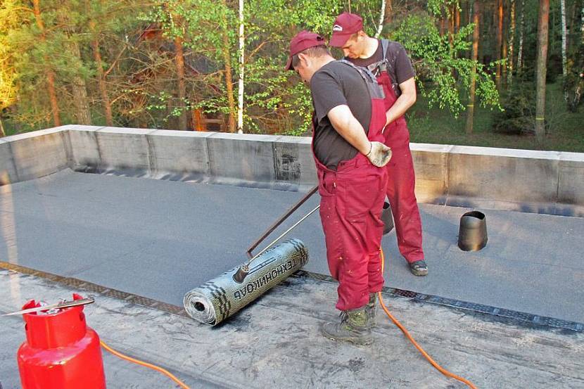 Укладку кровельного материала производят в одном направлении. При угле наклона крыши меньше 15°, материал раскатывают перпендикулярно стоку воды, начиная работу с самой низкой точки крыши. В том случае, когда наклон крыши больше 15°, рулон раскатывают от верхней точки к нижней. А ровную крышу кроют от ее края.