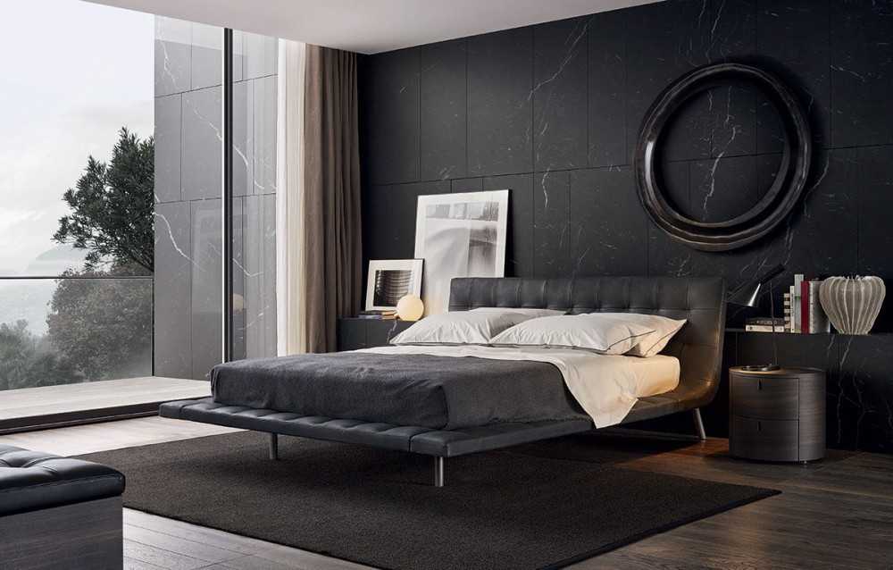 Однако, если спальня большая и просторная, темная мебель также может сочетаться с более насыщенными или даже ближе к черным цветам пола и стен