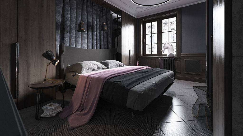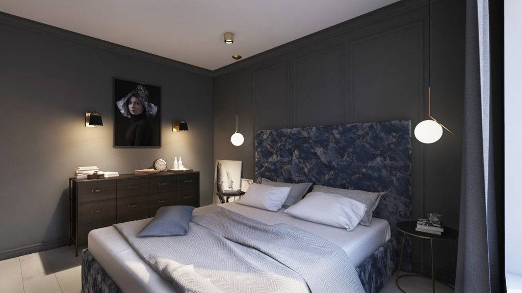 Размер комнаты важен, если вы хотите выбрать темную мебель. Спальня небольшого размера потребует от вас использования ярких цветов стен и пола. Кстати, у вас есть прекрасная возможность использовать глубокие, бросающиеся в глаза контрасты, даже когда речь идет о цвете кровати.