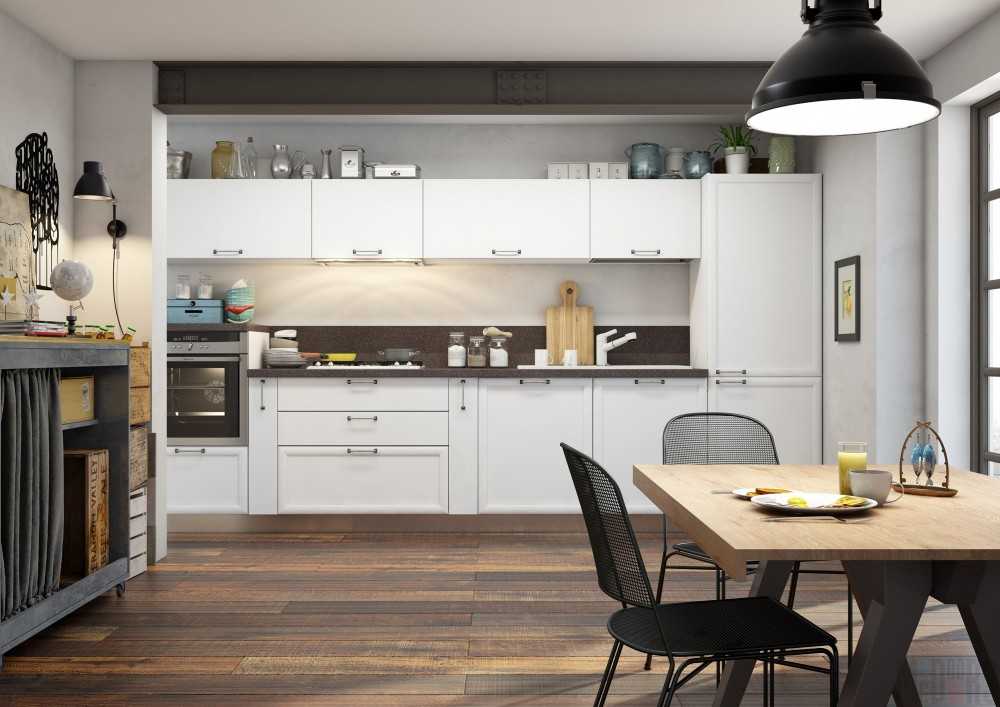 Белый цвет подходит для разных материалов: металла, древесины, стекла. Рядом со светлым гарнитуром уместно размещение декоративных элементов или аксессуаров.