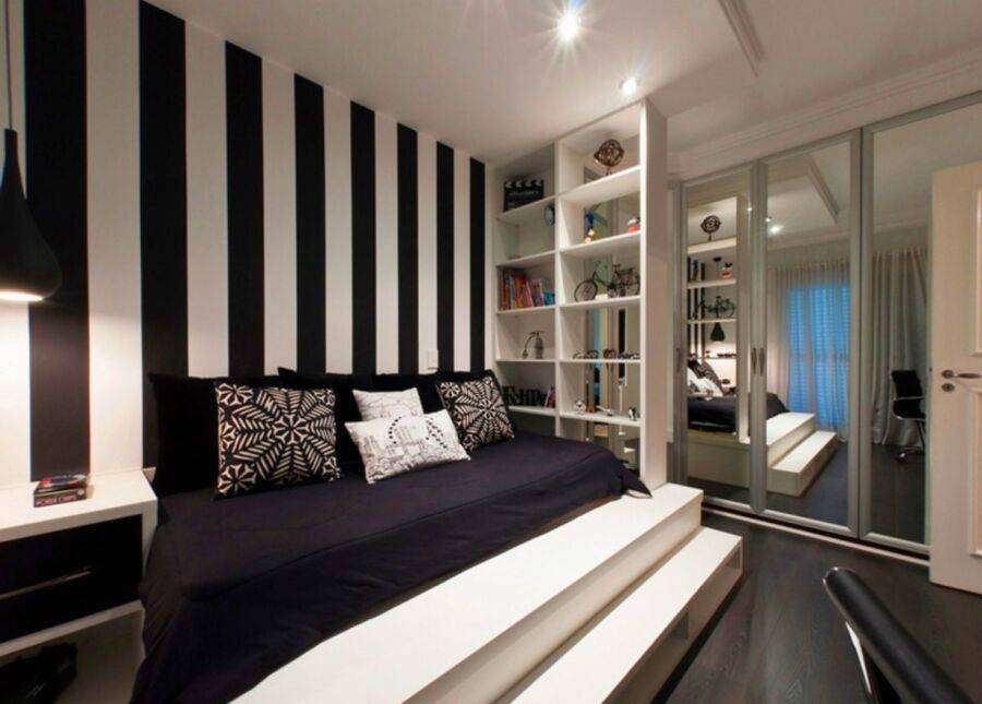 - разделение квартиры на несколько зон вполне получится при использовании светло-темных обоев (идеальный вариант в маленькой комнате);