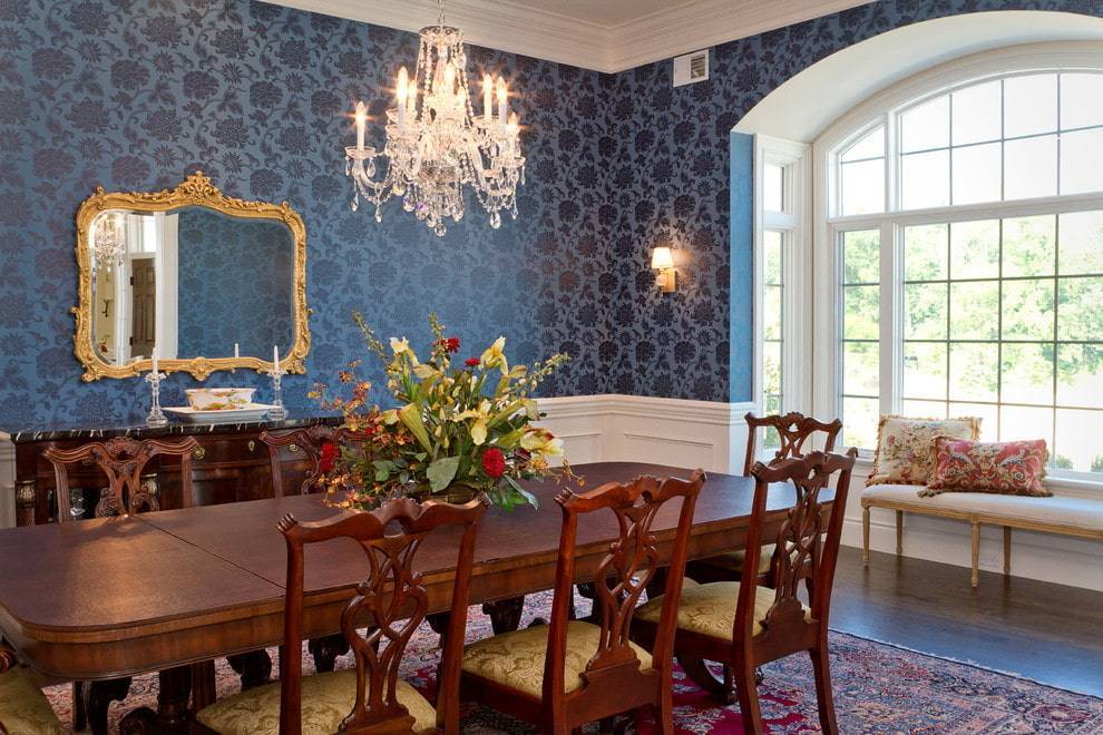 Не стоит сочетать другие яркие цвета с синими настенными покрытиями – они перетянут на себя все внимание. В случае, если вы хотите поклеить темно-синие настенные покрытия, поклейте их на одну сторону стены