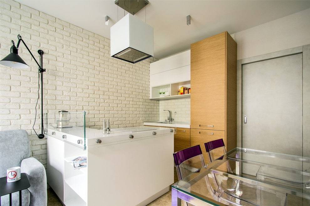 В зависимости от стиля кухни и общей цветовой гаммы интересно может смотреться фактурный фартук под камень, кирпич или бетон.
