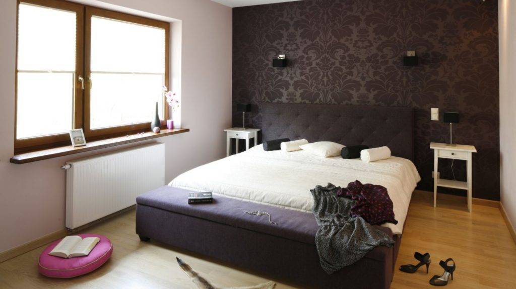 Размер комнаты важен, если вы хотите выбрать темную мебель. Спальня небольшого размера потребует от вас использования ярких цветов стен и пола. Кстати, у вас есть прекрасная возможность использовать глубокие, бросающиеся в глаза контрасты, даже когда речь идет о цвете кровати.