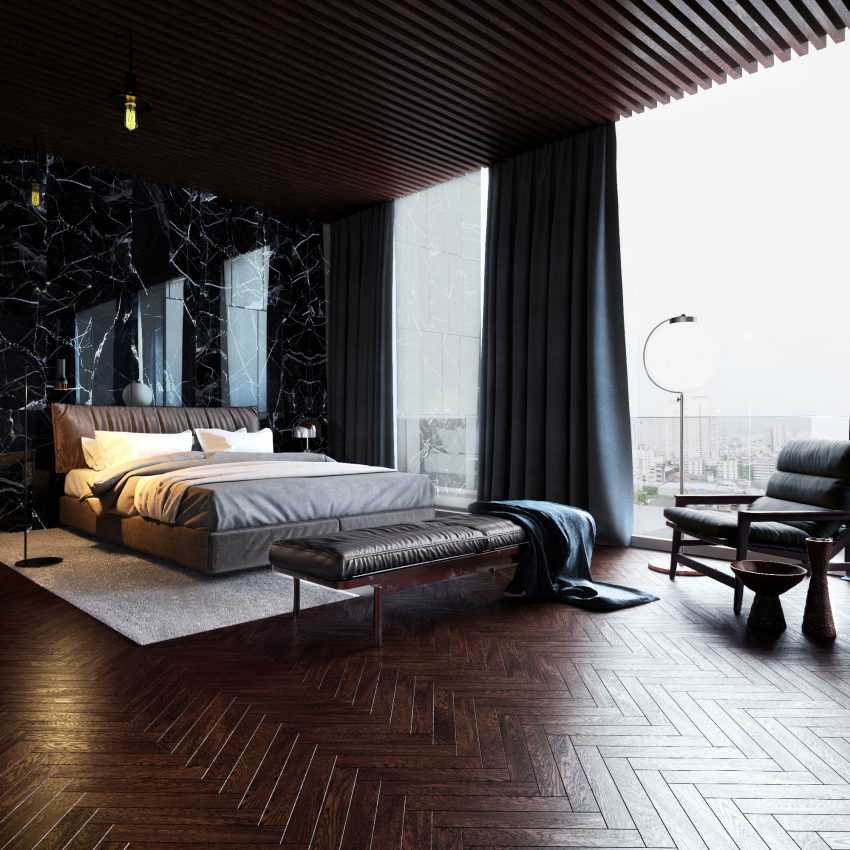 Удачные интерьерные стили для спален с темной отделкой и наполнением: