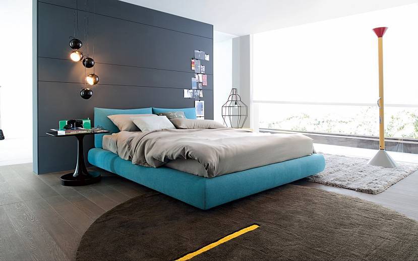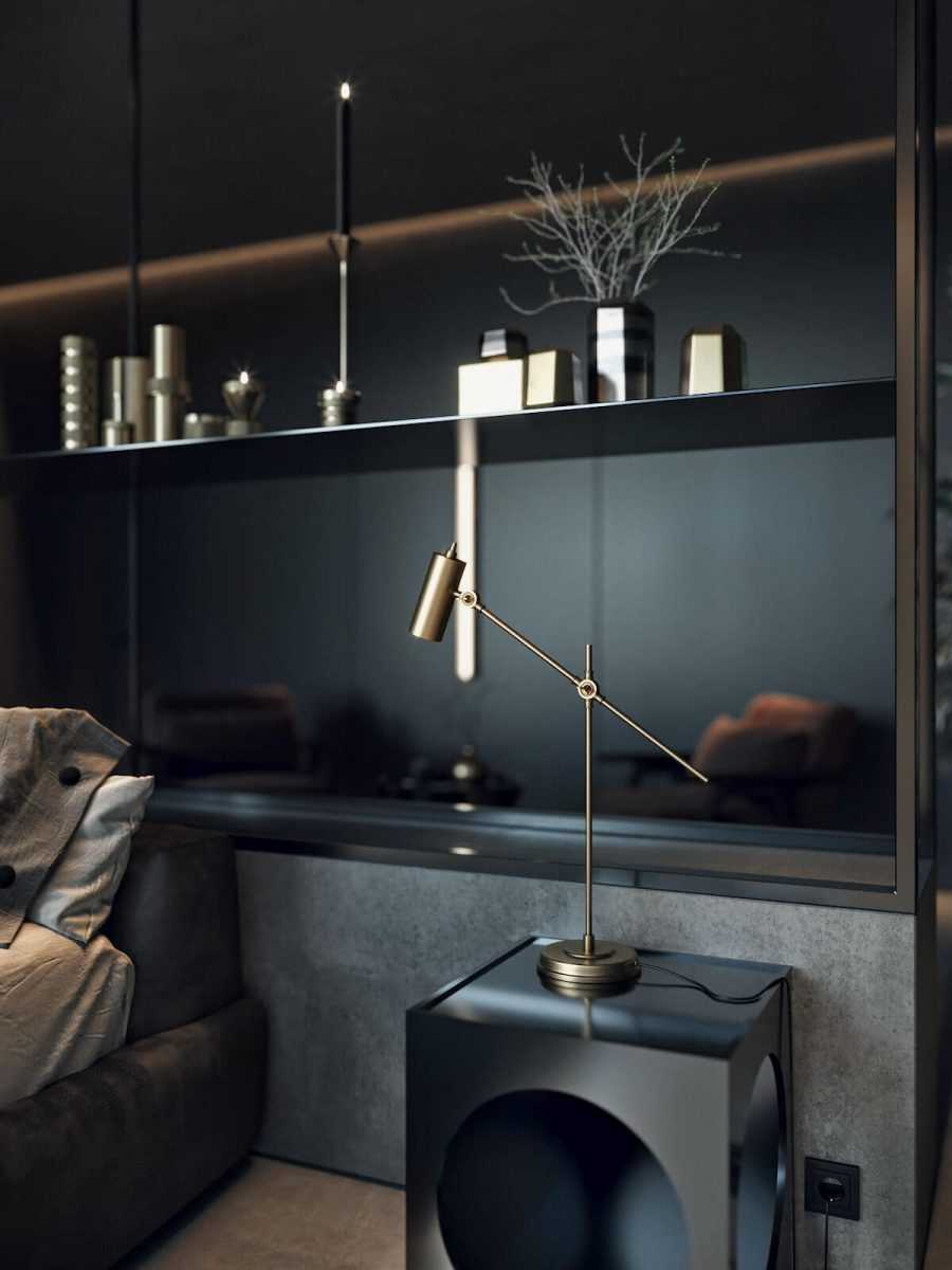Дабы смягчить обилие все же мрачных тонов, необходим яркий акцент. И это опять же — обои аквамарин, допустим вид пастельных узоров даже на темной основе, главное чтобы они не сужали пространство. Также лампы, светильники, ковер, тоже более мягкой палитры.
