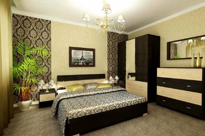 Выделить участок для отдыха очень просто – на его площади устанавливают кровать. Если спальня с темной мебелью, то стены и портьеры могут быть на пару тонов светлее. Для солидных интерьеров часто подбирают мебель, покрытую лаком.