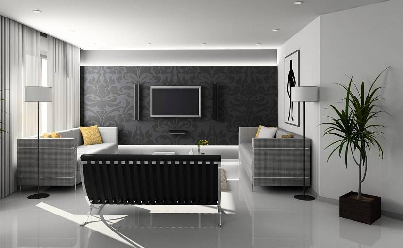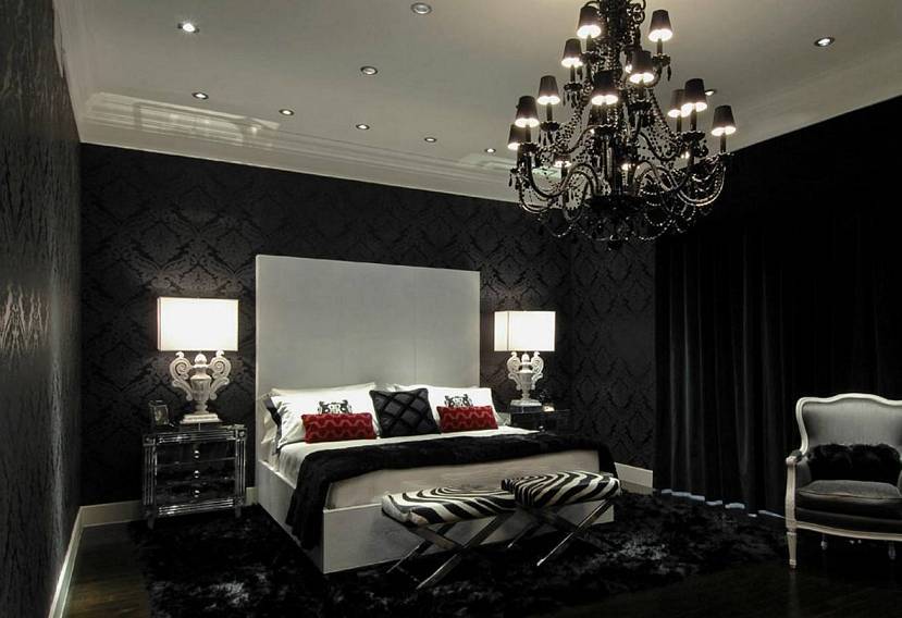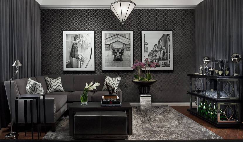 Черные обои в интерьере просторной комнатыИсточник 1zoom.me