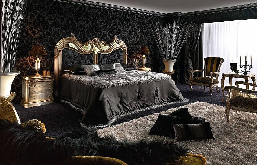 Шикарный интерьер черной спальни в стиле барокко, декор и мебель – под золотоИсточник static.tildacdn.com