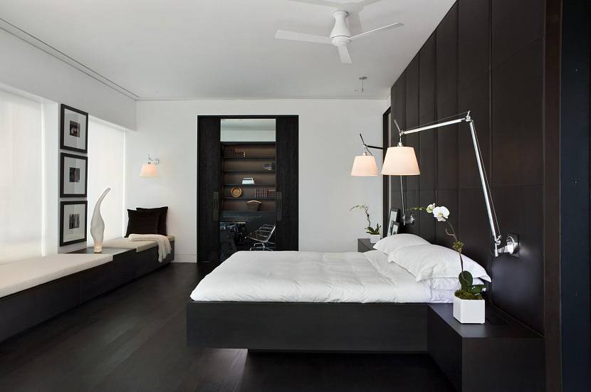 Спальня в современном стиле с черным поломИсточник steptwo.ru/
