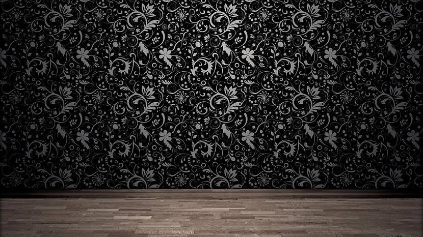 Черные обои с серебристым орнаментом для просторных гостиныхИсточник wallpapersafari.com