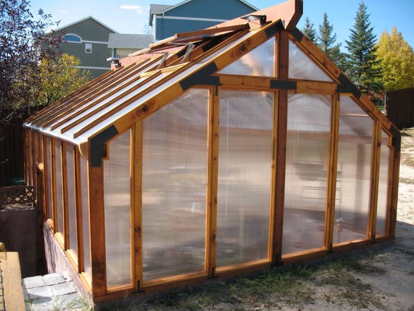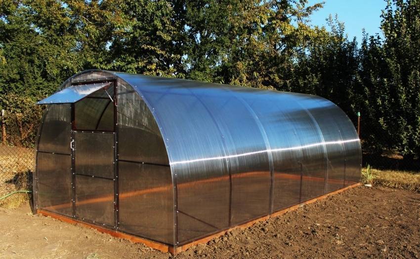 Теплица, изготовленная из поликарбоната, оказывается более долговечной и зачастую более эстетичной, чем туннель из пленки или модель из стекла