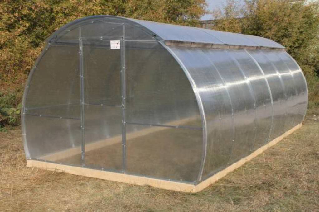 Каркас изделия выполнен из стальных трубок и полимерных компонентов. Ввиду отсутствия внешней нагрузки в зимний период усиление дуг в таких теплицах не практикуется. Благодаря облегчённой конструкции сооружение характеризуется небольшим весом и простотой монтажа. Толщина сотового поликарбонатного покрытия составляет 1,2–1,5 мм, сечение металлопрофиля – 2х2 см. Расстояние между соседними арочными дугами не превышает одного метра, что в сочетании с высокопрочным ячеистым покрытием позволяет сооружению легко переносить высокие ветровые нагрузки.