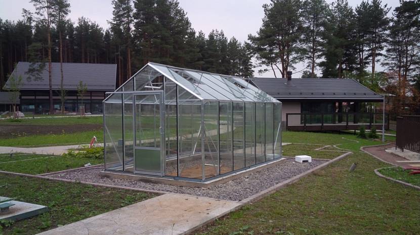 - Перед установкой нужно выровнять площадку, чтобы парник не перекосило. Лучше, если грунт будет достаточно твёрдым.