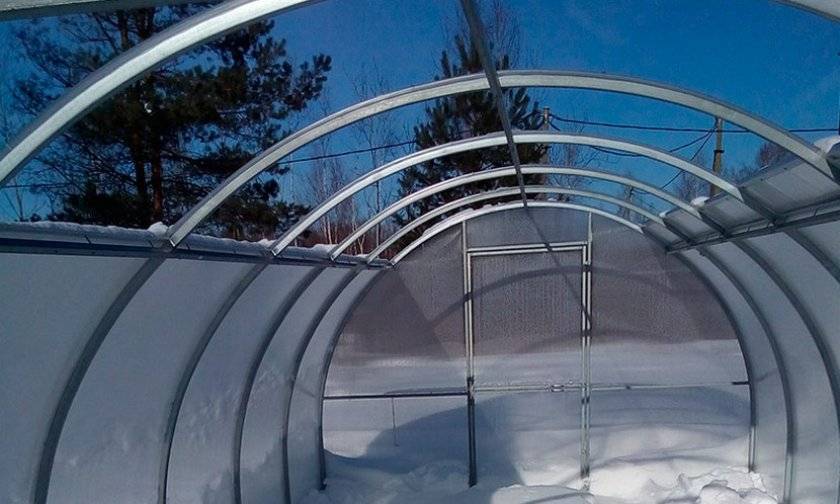 - Поскольку снег будет попадать непосредственно в теплицу, он укроет почву и не даст ей промерзнуть. Это, в свою очередь, позволит сохраниться благоприятной микрофлоре грунта, что положительно скажется весной и летом на росте и развитии культур.