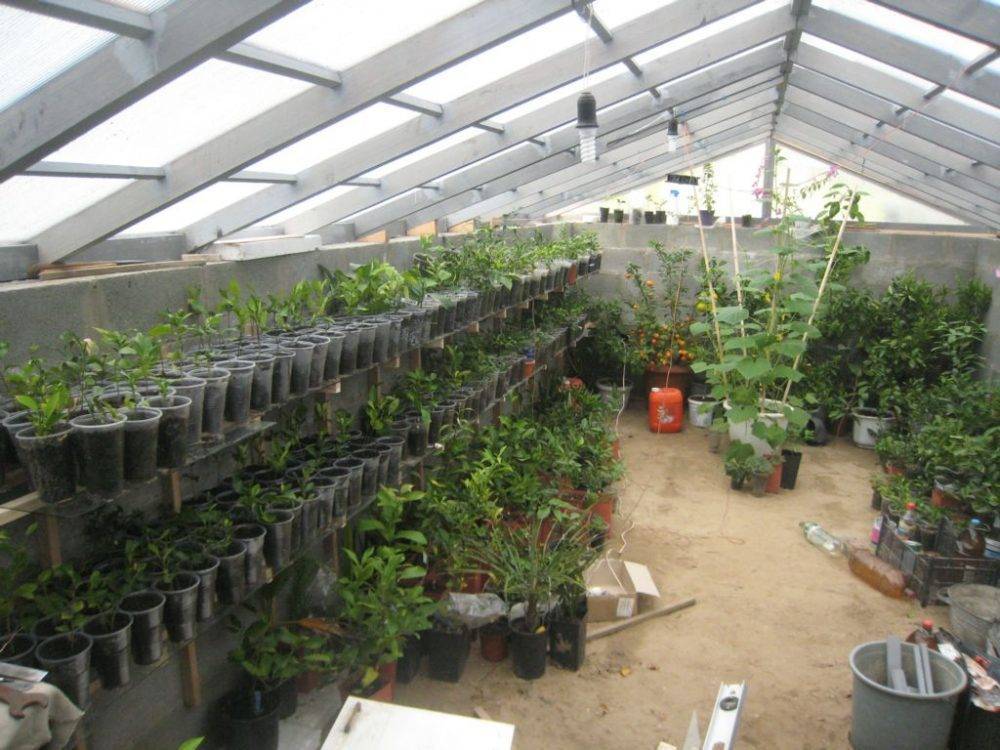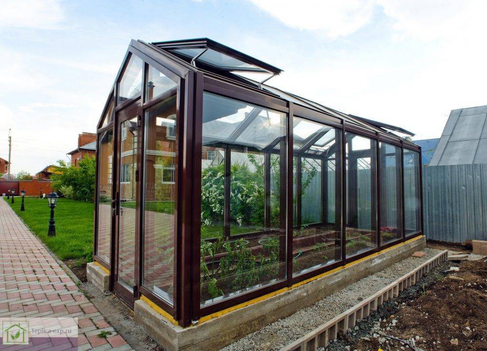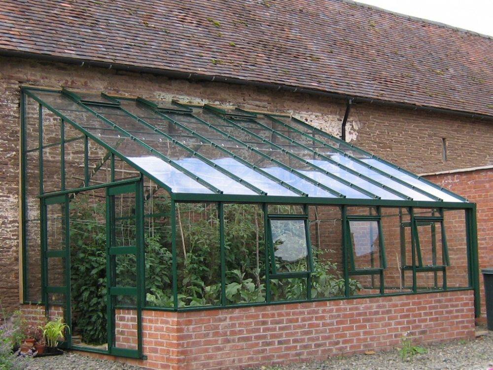 Теплица-термос. Большую часть строения составляют стены из кирпича или бетона, стеклянной остается крыша, а сама конструкция заглубляется в грунт. Потери тепла становятся минимальными, что делает ее идеальным вариантом для зимнего использования. Минус — высокие материальные и трудозатраты при строительстве.