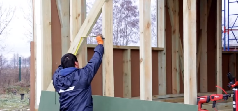 - Конструктивная жесткость. Ни одна МДВП, в том числе и изоплат, официально не является конструкционной плитой и по жесткости не сравнится с тем же OSB. Но, тем не менее, она вполне себе неплохо выполняет роль конструктивного элемента вкупе с другими элементами стены – наружной обшивкой, внутренней обшивкой и т. п. Обусловлено это тем, что плита в конструкции работает на излом в продольной плоскости, а не поперечной. А сломать так изоплат – не такая уж простая задача. К тому же за счет своей мягкости он очень плотно прилегает к каркасу, то есть пятно контакта с каркасом у него намного лучше, чем у жестких материалов. Поэтому мое мнение, что плиту 25 мм и выше вполне можно использовать для обеспечения жесткости конструкции и без дополнительных укосин. Это подтверждает и скандинавская практика – на фото финских каркасов в МДВП укосины встречаются достаточно редко.
