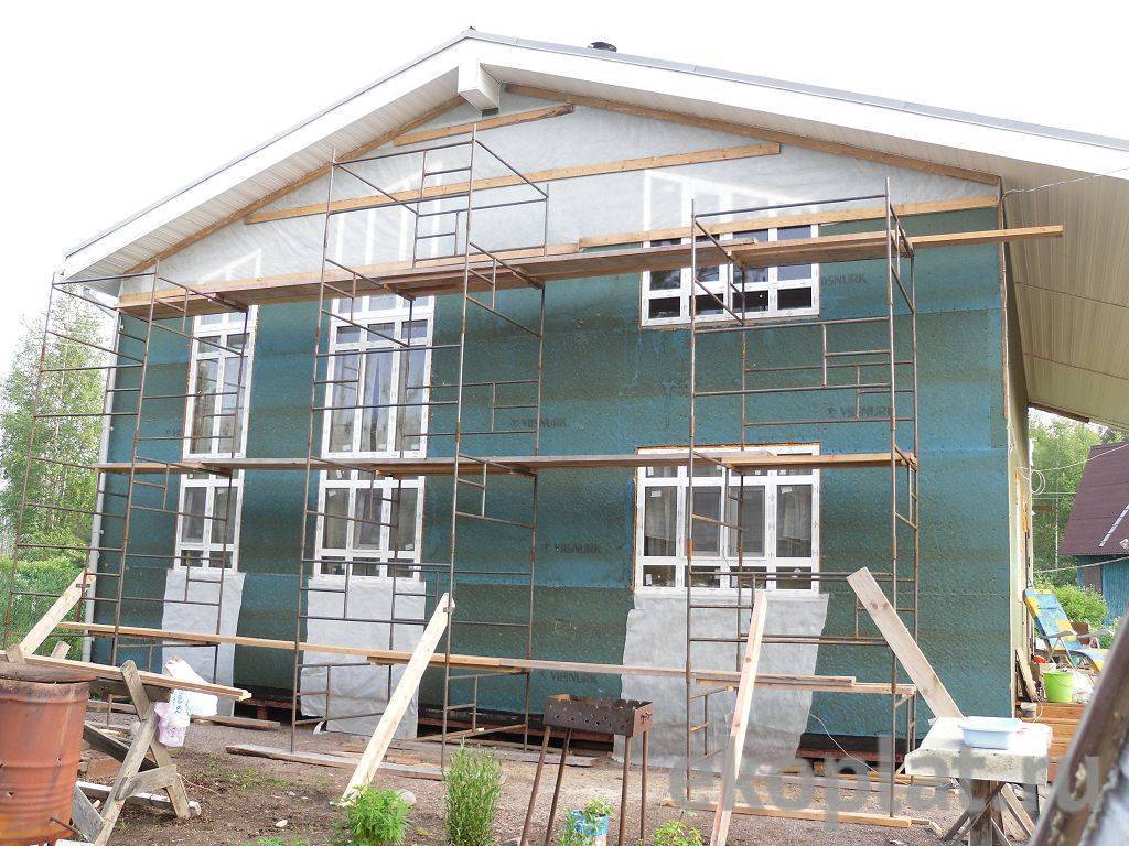 Для отвода водяного пара из ветрозащитной плиты необходимо создать зазор шириной от 3 до 5 см. Для этого на установленные панели набивают деревянный брусок (контррейку) и уже к нему крепят внешнюю облицовку стен и кровли.