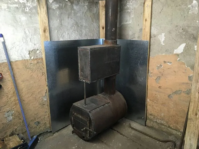 Данная конструкция позволит накапливать тепло, и гараж будет греться еще какое-то время без дополнительного топлива.