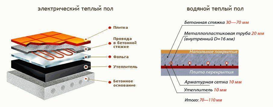 Он имеет достаточно простое устройство. Как и водяной, он также монтируется на теплоизолирующем материале, после чего заливается цементно-песчаным раствором. Потом на схватившейся стяжке укладывают линолеум, плитку или какое-нибудь другое покрытие.