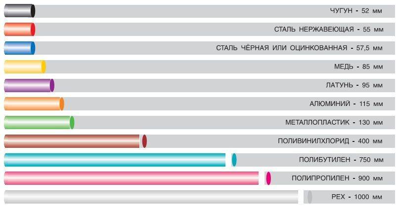 Диаграмма удлинения 100мм трубы при повышении температуры на 50С в системе теплого пола