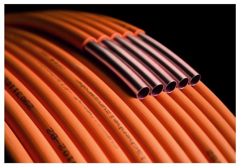 В отличие от распространённого мнения выбор труб для устройства теплообменника в полу не так широк. Всего существует два варианта: сшитый полиэтилен и медь. Самые очевидные плюсы специальных материалов — это долговечность, стойкость к деформациям, малый коэффициент линейного расширения. Но главное преимущество — кислородный барьер, который, в конечном счёте, пресекает возникновение осадка на внутренней поверхности труб.