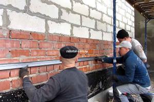 Если есть цоколь, предварительно рассчитывается цокольный профиль в качестве опоры для будущих панелей.