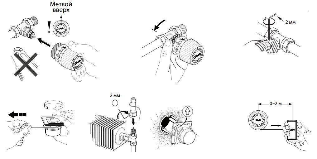 Во время монтажа регулятор термоголовки нужно установить на максимум. Это обеспечит правильную работу устройства. Непосредственно перед установкой движение воды или другого теплоносителя в контуре нужно перекрыть, затем слить.