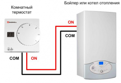 - Как только температура поднимется до желаемой отметки, термостат подаст команду для отключения котла.