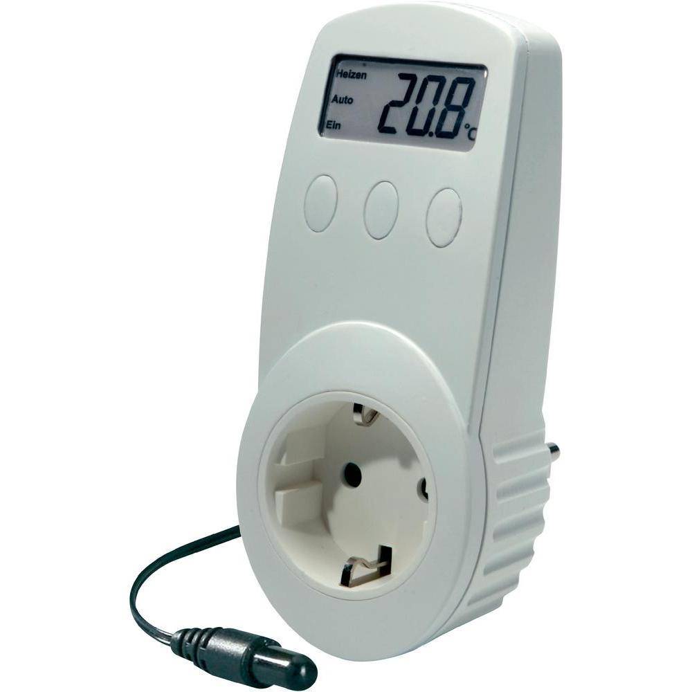 Данный терморегулятор может работать не только с отопительным оборудованием, но и с кондиционерами, обеспечивая поддержку заданной температуры воздуха в диапазоне от +5 до +30 градусов с шагом в 1 градус. Также на борту предусмотрена функция ночного режима работы, уменьшающая температуру на 4 градуса от установленного предела. Для контроля текущего температурного режима на передней панели располагается небольшой жидкокристаллический дисплей. Питается термостат от двух батарей формата АА, причем электроэнергия расходуется максимально экономично, обеспечивая длительную работу от одного комплекта. Стоимость прибора составляет примерно 1400-1500 рублей – это одно из самых доступных предложений на рынке.